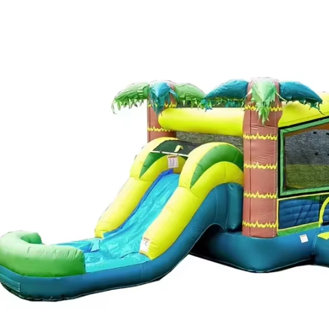 Opblaasbare Palm Kokospalm Boomhut Uitsmijter Springkasteel Springkussen Huis Combo Met Glijbaan Voor Kinderfeest